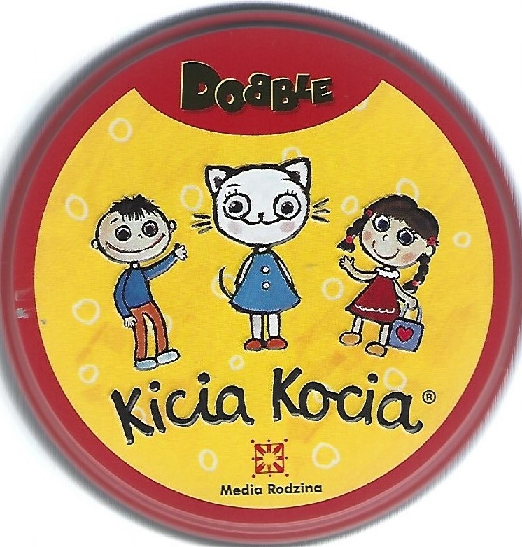 Na czym to polega? Spójrz na pierwszą kartę, którą trzymasz w ręku oraz na tę, która leży na środku stołu. Znajdź na nich wspólny symbol, nazwij go i szybko pozbądź się swojej karty. Teraz następna! Tylko nie zwątp, dwie dowolne karty zawsze łączy jeden wspólny obrazek. W Dobble można grać na wiele sposobów, a 5 z nich jest opisanych w instrukcji jako mini-gry. Aby utrudnić zabawę symbole na kartach bywają odwrócone i miewają różne rozmiary. Same karty są okrągłe i kolorowe, a każda z nich ma unikatowyy zestaw symboli związanych z postaciami z książeczek o Kici Koci. (Z opisu wudawcy).